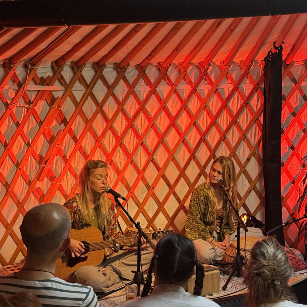 Twee prachtige dagen Yurtsessies met Anouk & Yora. Alles is voorbij gekomen. Een lach, een traan en er is gedanst maar we hebben ook veel verbinding gezien. Ook de ontroerende verhalen van het publiek (wat de muziek van Anouk & Yora voor hun betekent heeft) deden ons veel. Er was ook nog ruimte voor een mooie ceremonie. Dat wat je wilde achterlaten kon je in het vuur werpen. De vele positieve reacties die we tijdens en na het concert mochten ontvangen, stimuleerden ons om door te gaan met de Yurtsessies. Dit is precies wat wij voor ogen hebben met de sessies. Verbinden door en met muziek.
